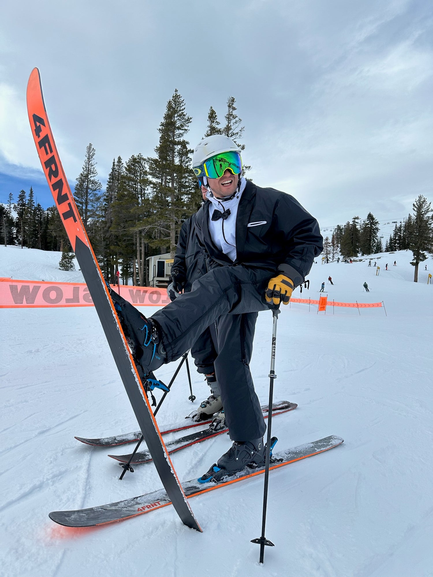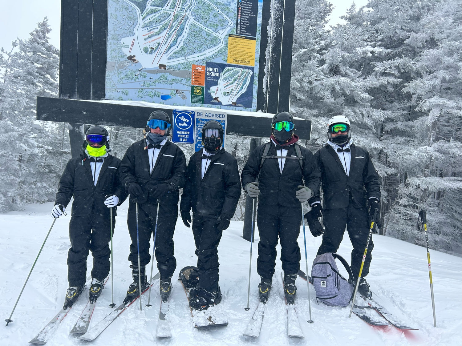 We believe the slopes are an extension of the office and nothing says you mean business like a tuxedo ski suit.
